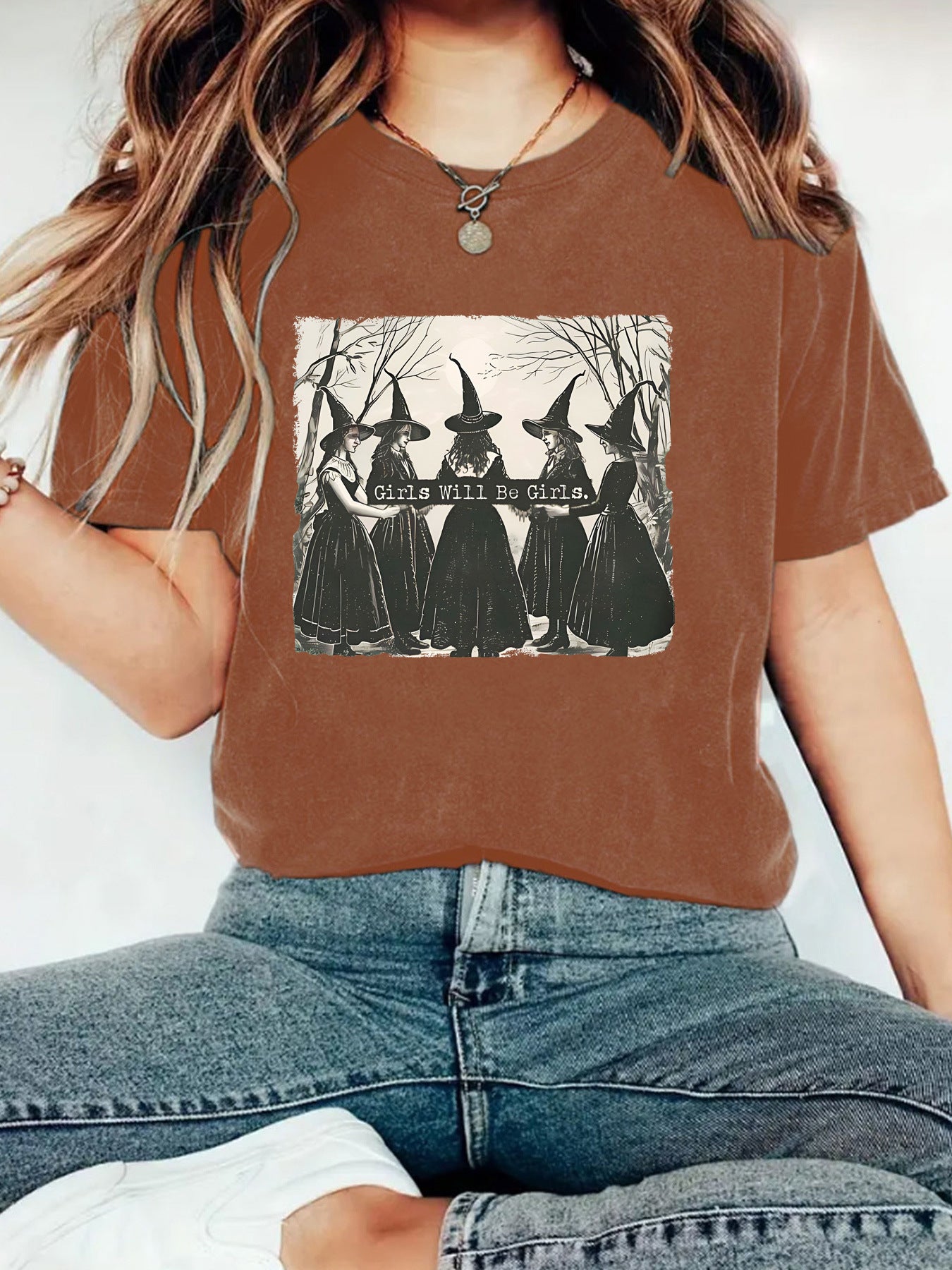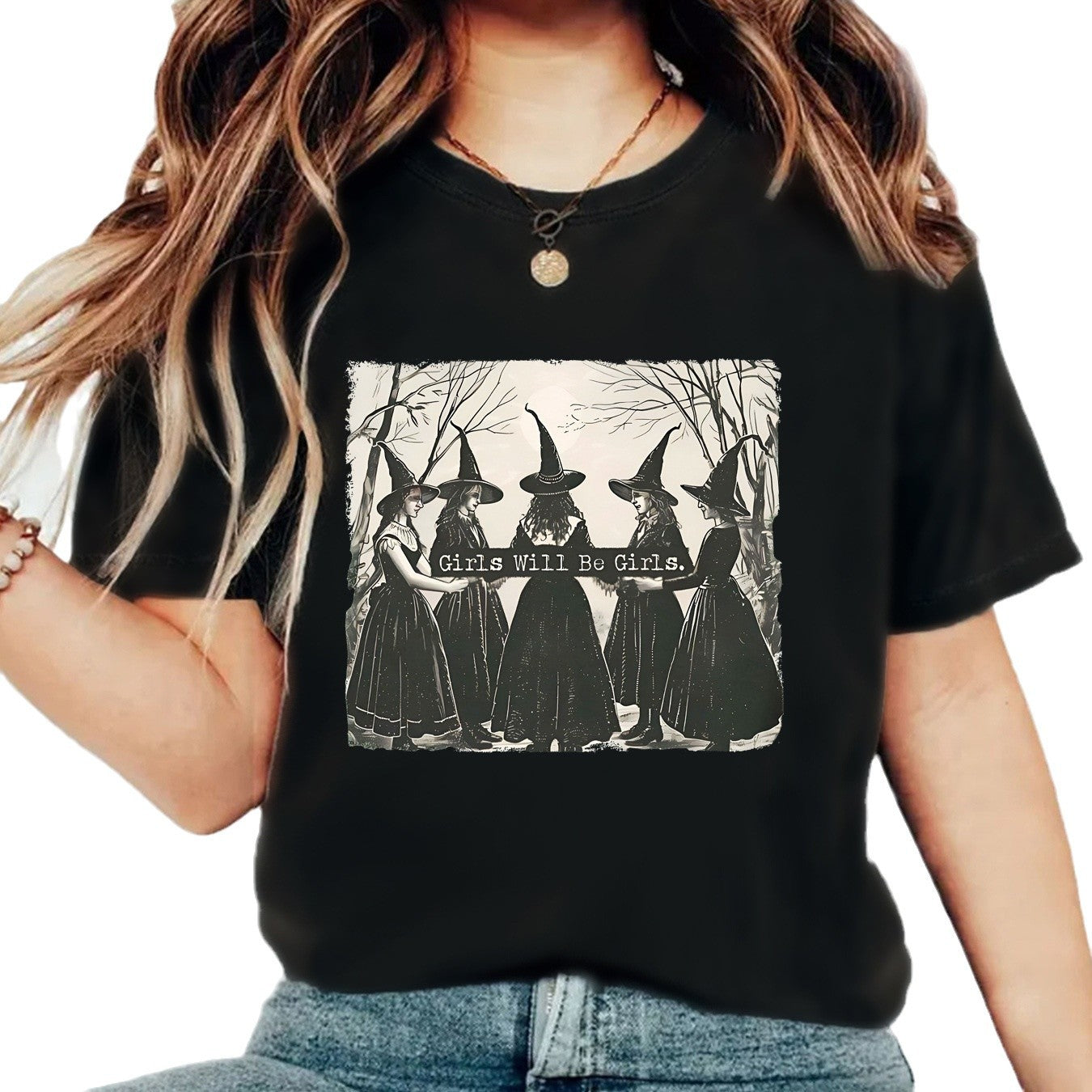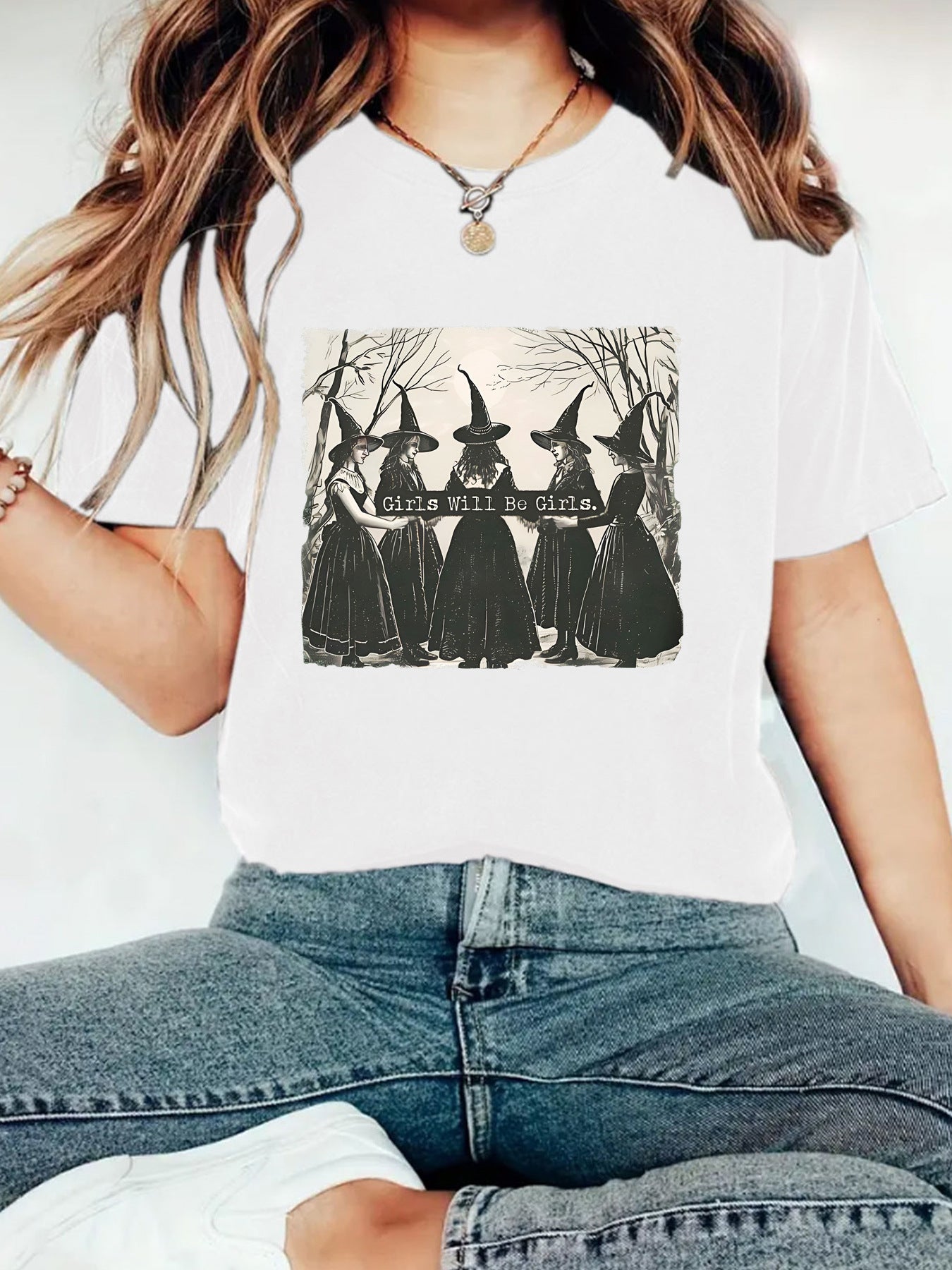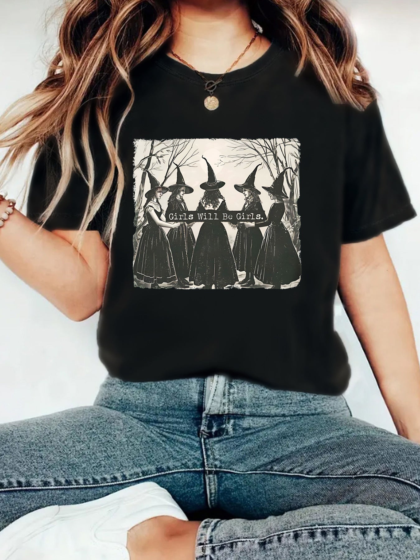 Girl is girl pattern round neck short sleeved shirt