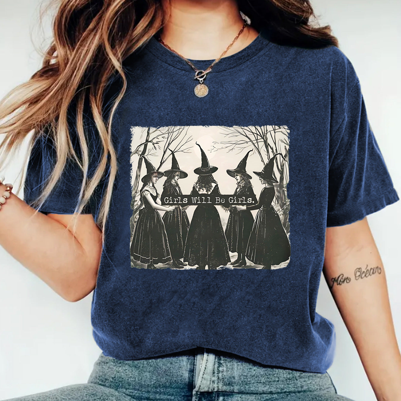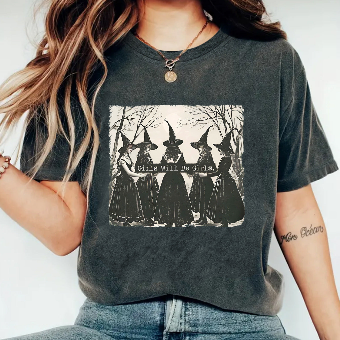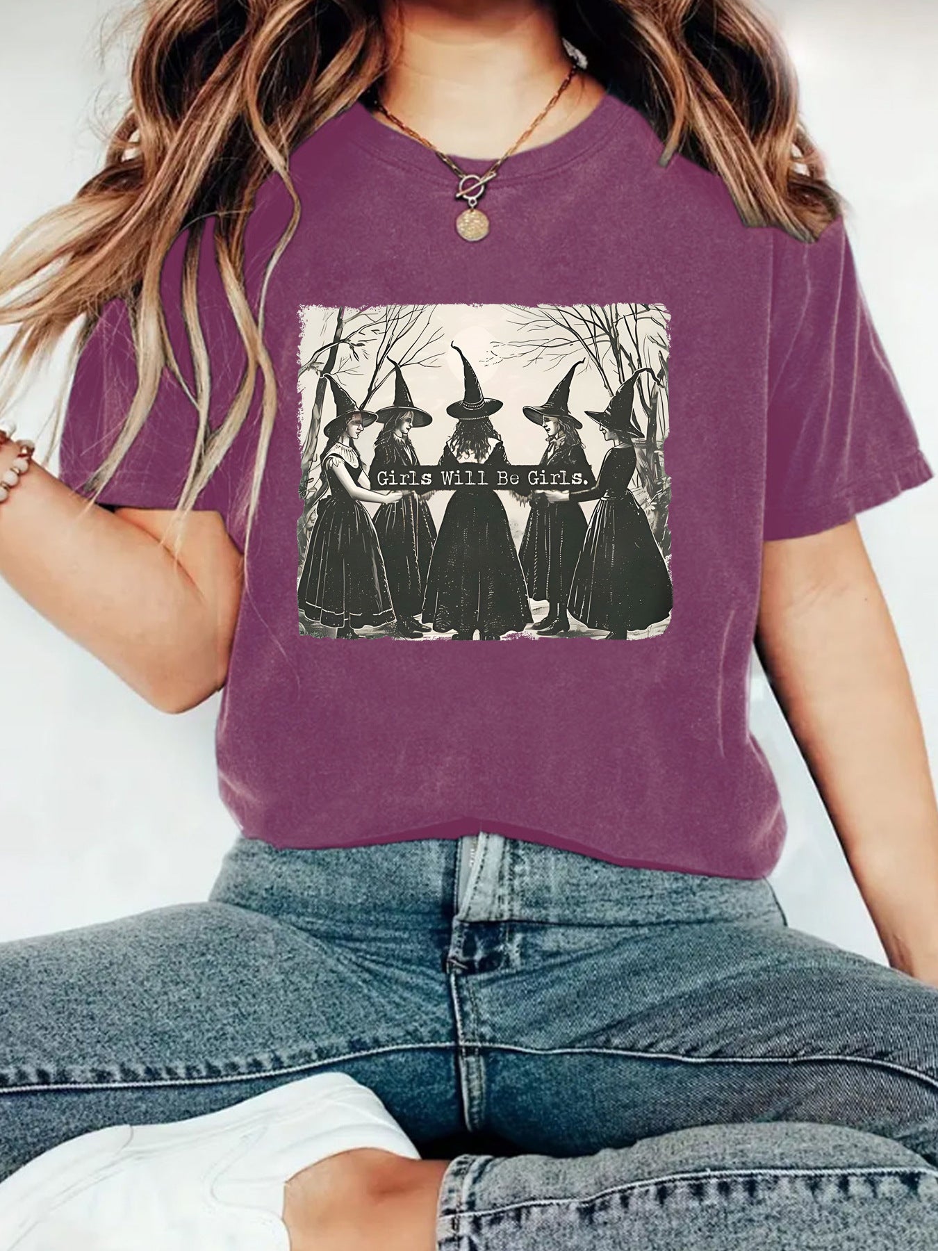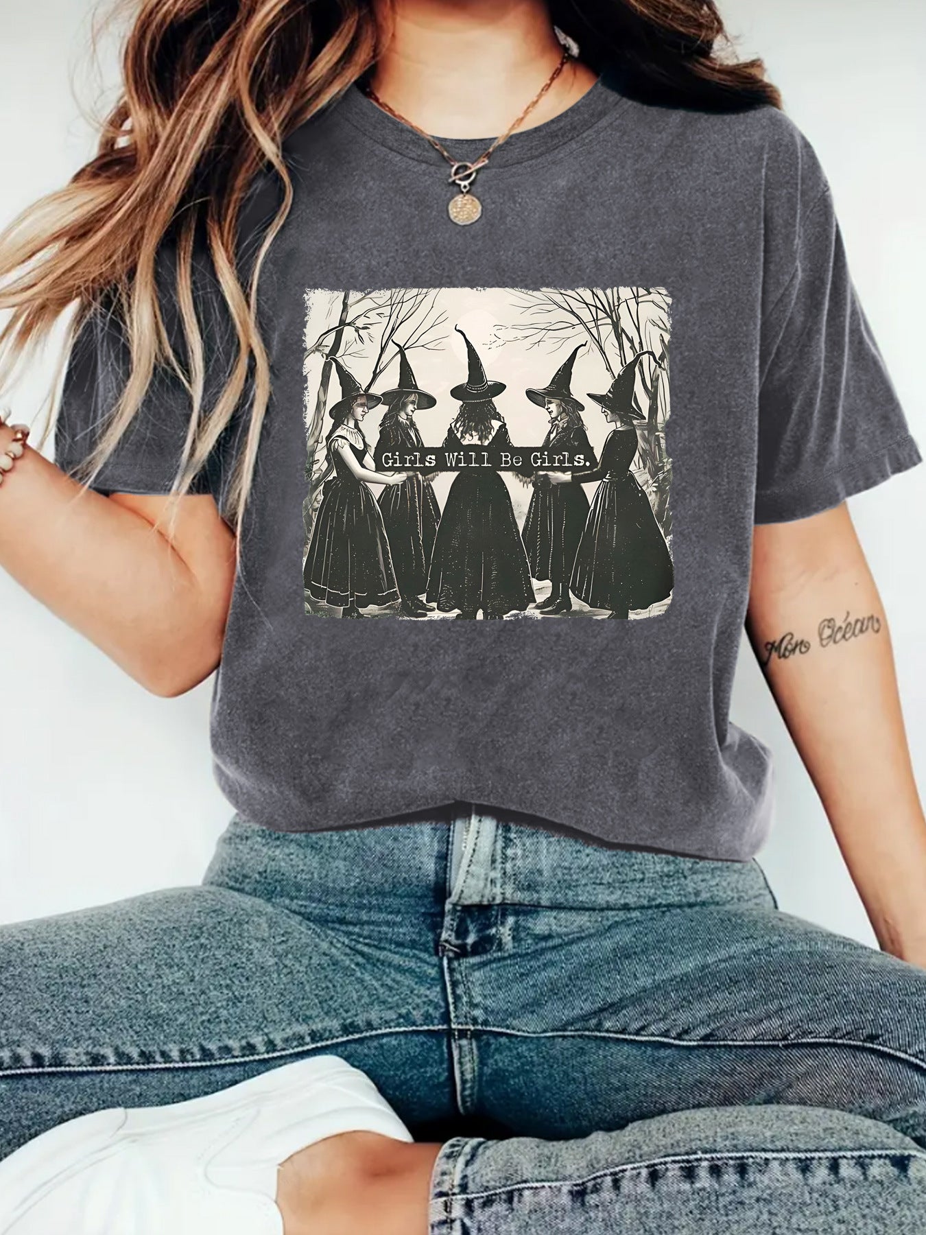 Girl is girl pattern round neck short sleeved shirt